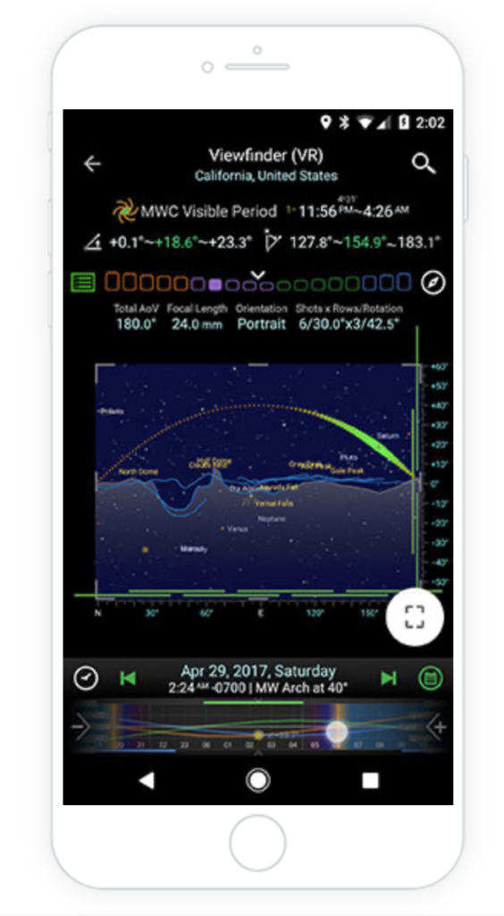 Planit! for Photographers, is the App Linda spoke about during Edit My Raw. The Planit! App is like a virtual camera. Instead of going to a location with your camera, you can place the camera pin on the map to simulate going to that location. You can add markers to the map to create your own scene and visualize it in the virtual viewfinders. You can adjust the time slider to change to any time in the past (in case you have a Time Machine) or in the future to see where the sun, the moon, the stars, or the Milky Way will be and how they will be moving over the map or in the viewfinder.
